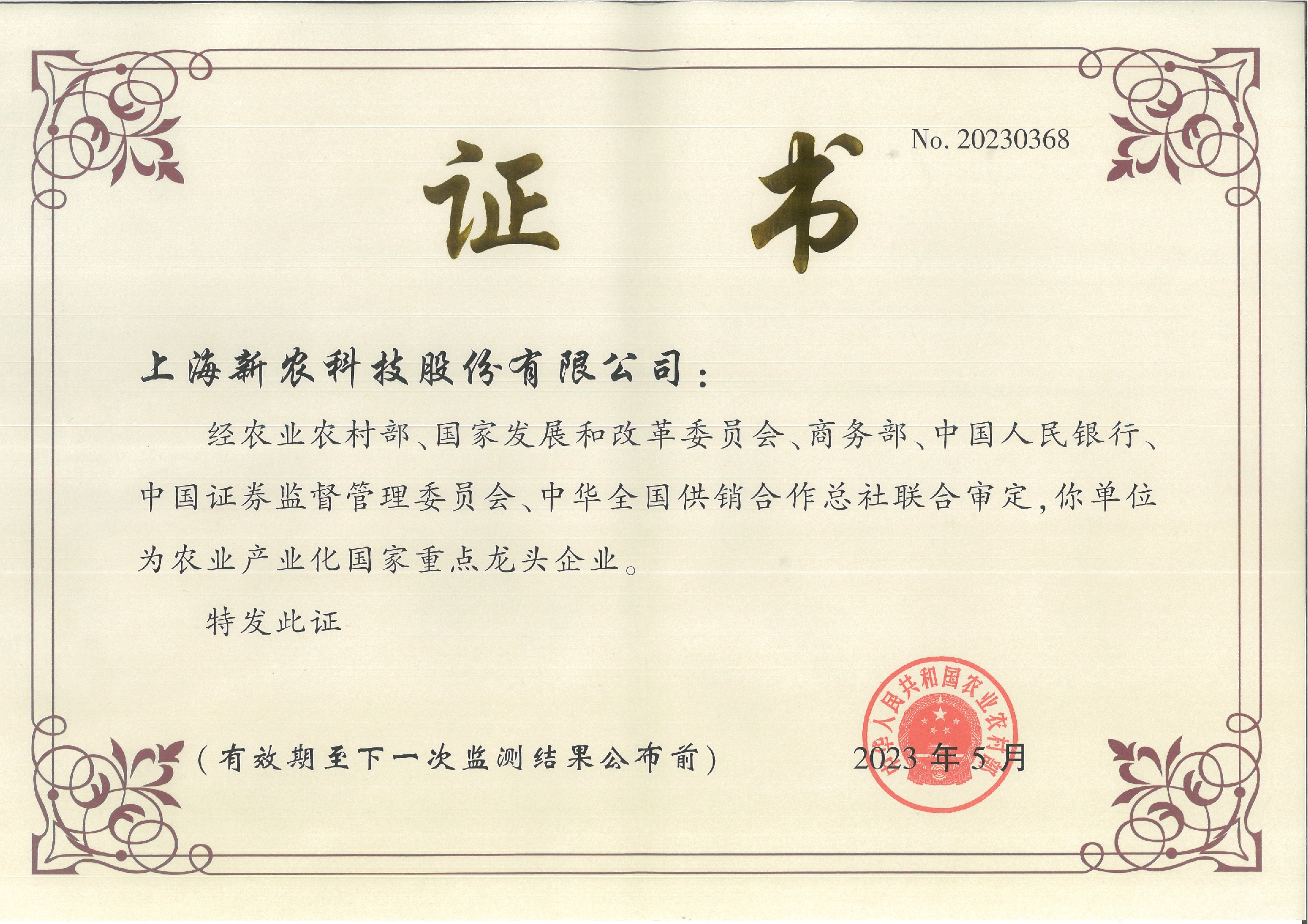 上海新農科技股份有限公司成立于 1994 年,經過多年的努力拼搏,已發展成為集種豬、商品豬、飼料生產與研究為一體的專業化公司。公司榮獲了高新技術企業、國家農業產業化重點龍頭企業、上海市專精特新企業、上海市專利工作示范按企業、上海市企業技術中心等榮譽稱號;承擔了多項政府項目,自主研發項目;獲得了多項科技進步獎,發明專利十余項。現有 1 個專業公豬站、18 個商品豬場等養殖基地,年出欄近 60 萬頭。